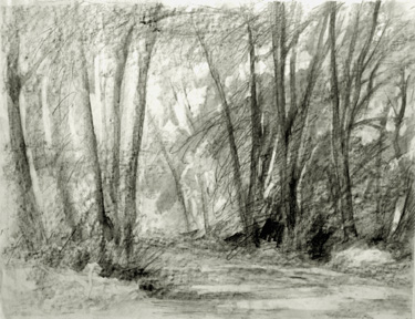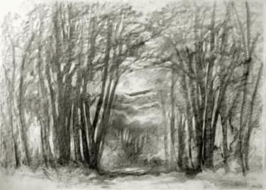 Tree Lines and Path, graphite on off-white Basingwerk 20x25" |